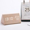 Bamboo Color Wooden Triangular LED Alarm Clock Desktop Digital Thermometer And Electronic Clock