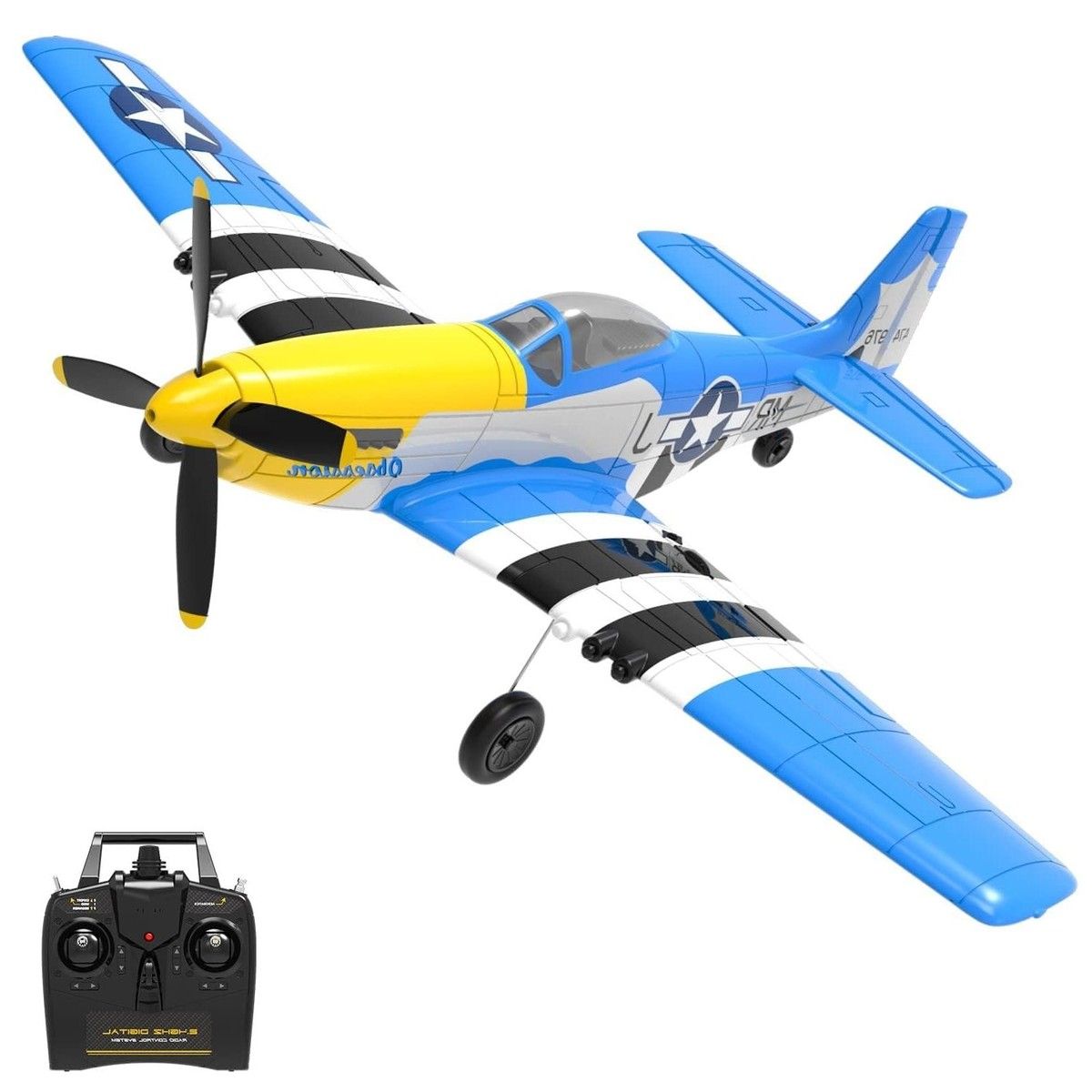 Easy-to-Fly RC Plane for Beginners: 2.4Ghz P51D Mustang with Gyro Stabilization (Blue)