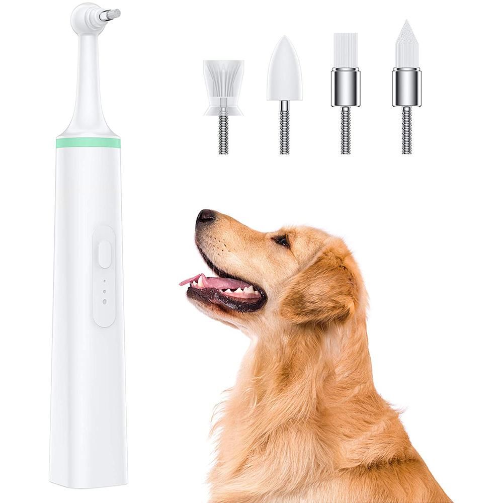 Electric Dog Toothbrush: Tartar and Plaque Cleaner with 4 Brush Heads for Pets